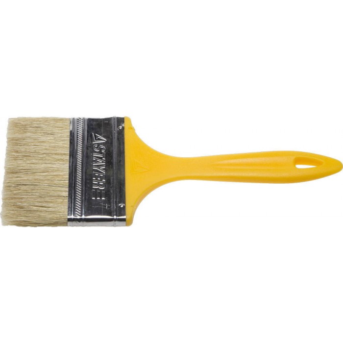Натуральная щетина обеспечит оптимальное нанесение различных видов ЛКМ, щетина кисти надежно закреплена бандажом из никилированной стали, а наличие легкой пластмассовой рукоятки обеспечит комфортную работу