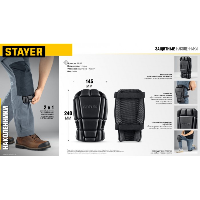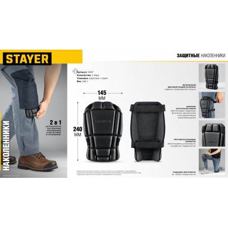 STAYER UNIVERSAL 2 в 1 вставка-наколенники защитные из ЭВА, 2 крепежных ремня (11197)