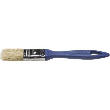 Натуральная щетина обеспечит оптимальное нанесение различных видов ЛКМ, щетина кисти надежно закреплена бандажом из никилированной стали, а наличие легкой пластмассовой рукоятки обеспечит комфортную работу