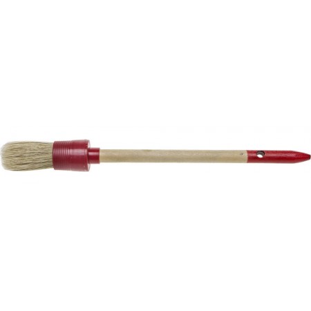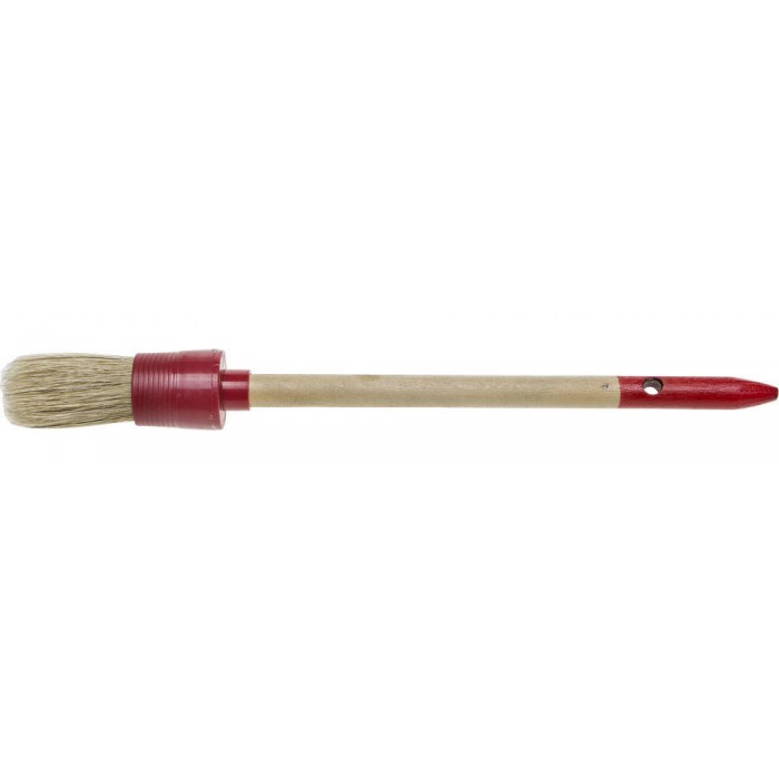 Натуральная щетина обеспечит оптимальное нанесение различных видов ЛКМ, щетина кисти надежно закреплена в пластмассовом корпусе, а наличие удобной деревянной рукоятки обеспечит комфортную работу
