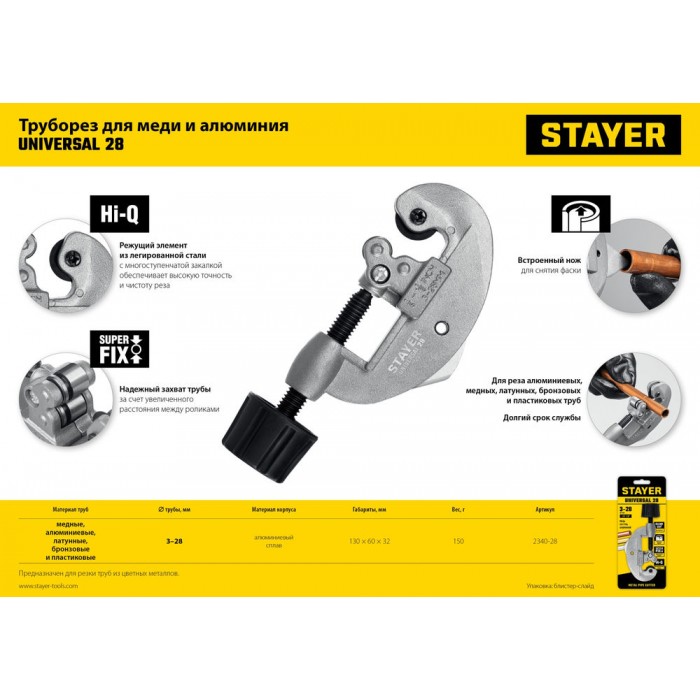 Для резки труб из цветных металлов, диаметром 3-28мм