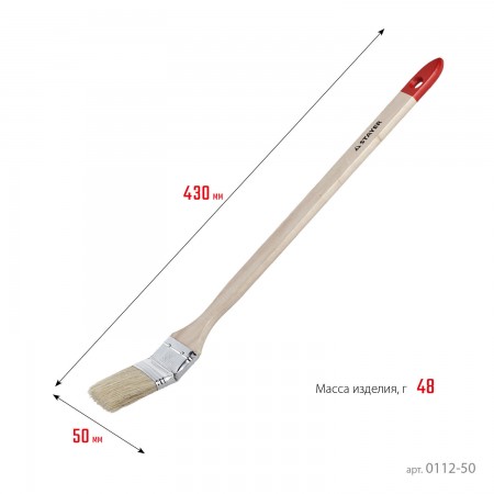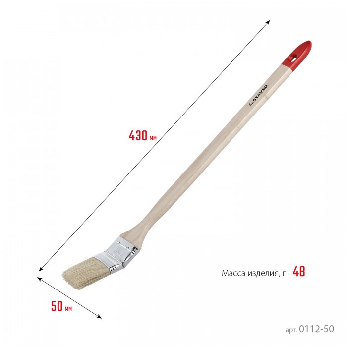 STAYER UNIVERSAL, 50 мм, 2?, светлая натуральная щетина, деревянная ручка, все виды ЛКМ, радиаторная кисть , радиаторная кисть (0112-50_z01)