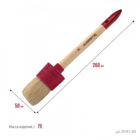 STAYER UNIVERSAL, 50 мм, пластмассовый корпус, светлая натуральная щетина, деревянная ручка, все виды ЛКМ, круглая кисть (0141-50)