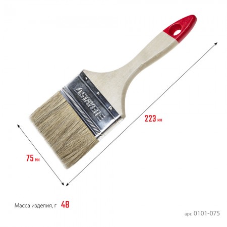 Натуральная щетина обеспечит оптимальное нанесение различных видов ЛКМ, щетина кисти надежно закреплена бандажом из никилированной стали, а наличие удобной деревянной рукоятки обеспечит комфортную работу
