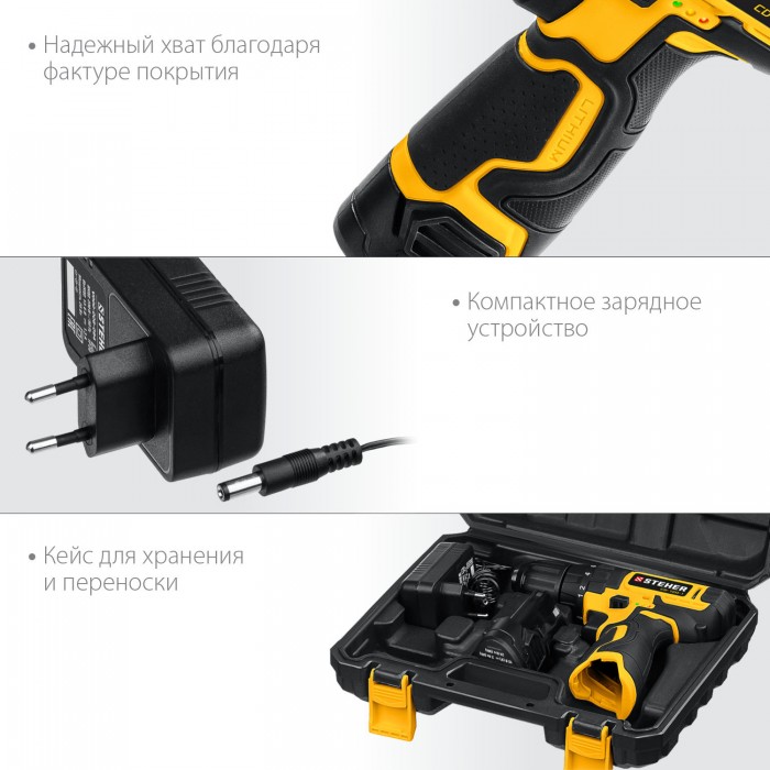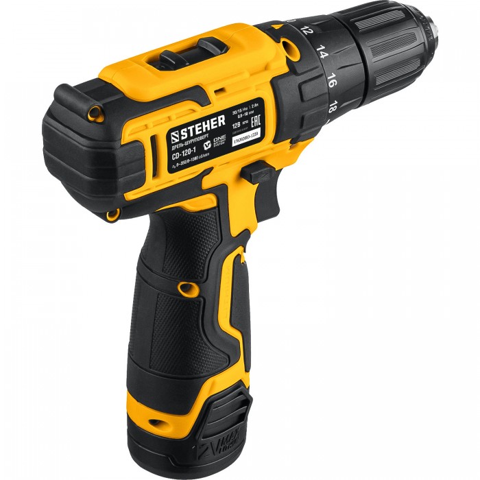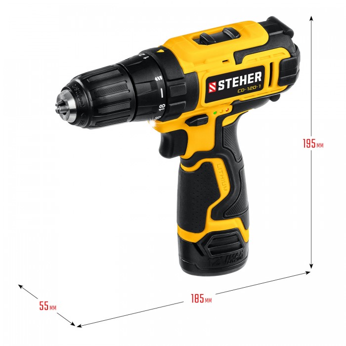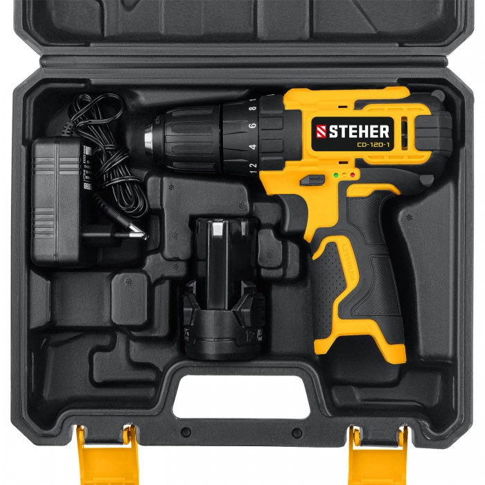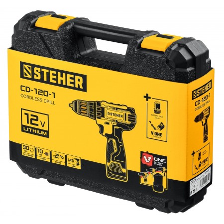 STEHER 12 В, 30 Н·м, 1 АКБ (2 А·ч), дрель-шуруповерт, кейс (CD-120-1)