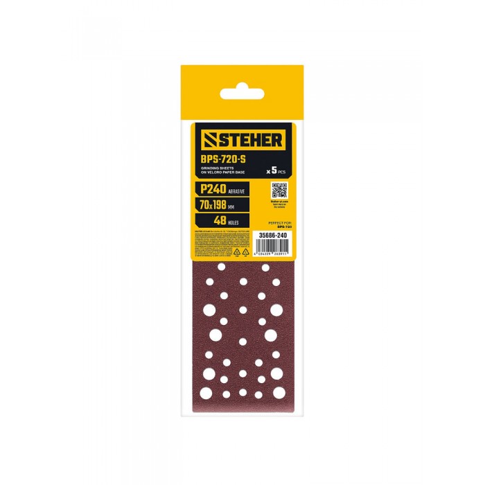 Лист шлифовальный на липучке STEHER BPS-720-S 70х198 мм Р240 56 отв. 5 шт. 35686-240