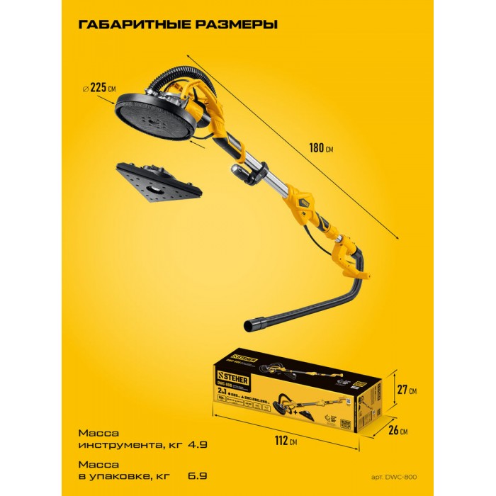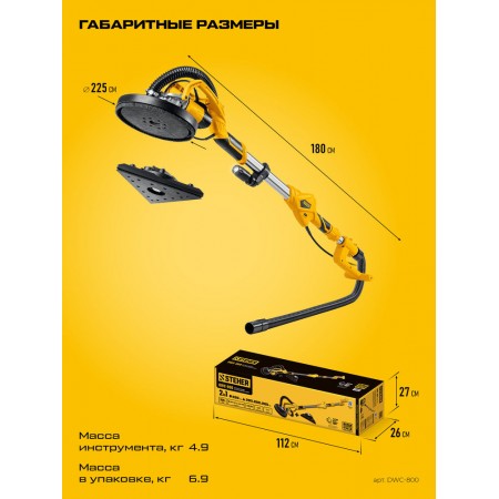 - Диаметр основания 225 мм ускоряет обработку больших поверхностей
