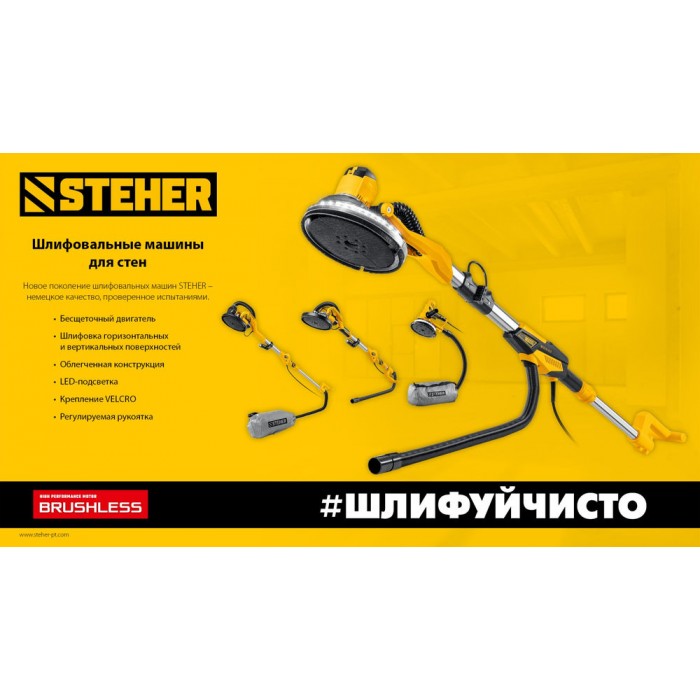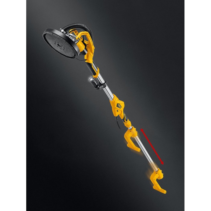 Машина шлифовальная для стен (жираф) - незаменимый инструмент для обработки как горизонтальных, так и вертикальных поверхностей. Благодаря сменному типу насадки (круг или треугольник) можно работать как по площади, так и в углах. Раздвижная рукоятка позволяет отрегулировать инструмент под свой рост и дотянуться во все точки без лестницы. Минимальное количество пыли при работе за счет возможности подключения пылесоса