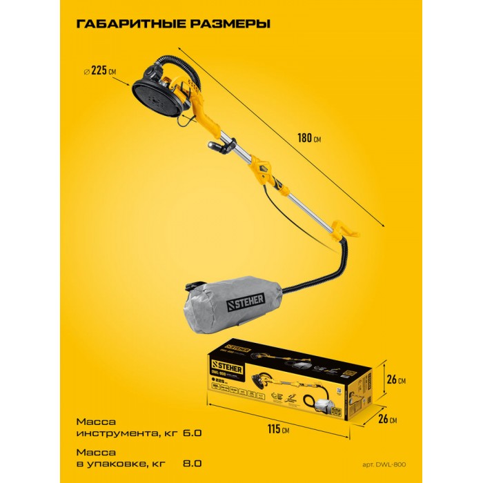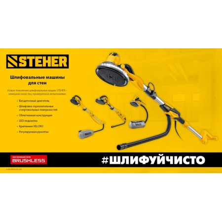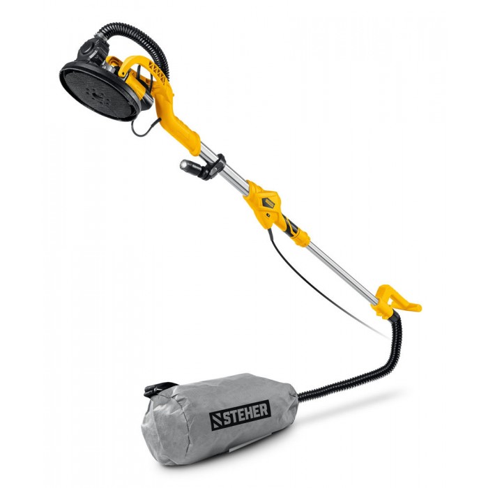 Машина шлифовальная для стен (жираф) - незаменимый инструмент для обработки как горизонтальных, так и вертикальных поверхностей. Раздвижная рукоятка позволяет отрегулировать инструмент под свой рост и дотянуться во все точки без лестницы. Минимальное количество пыли при работе за счет возможности подключения пылесоса или принудительного отвода пыли в мешок