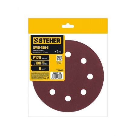 Круг шлифовальный на липучке STEHER DWH-180-S 180 мм Р120 8 отв. 5 шт. 35682-120