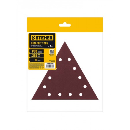 Треугольник шлифовальный на липучке STEHER GIRAFFE T-285 мм Р80 12 отв. 5 шт. 35683-080