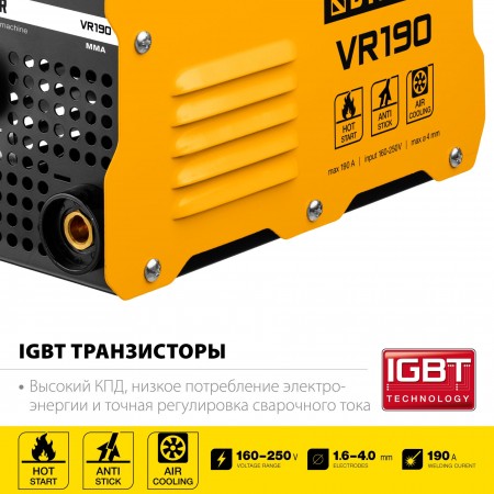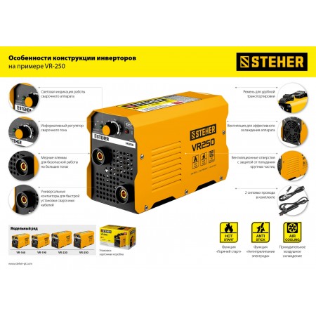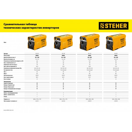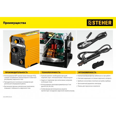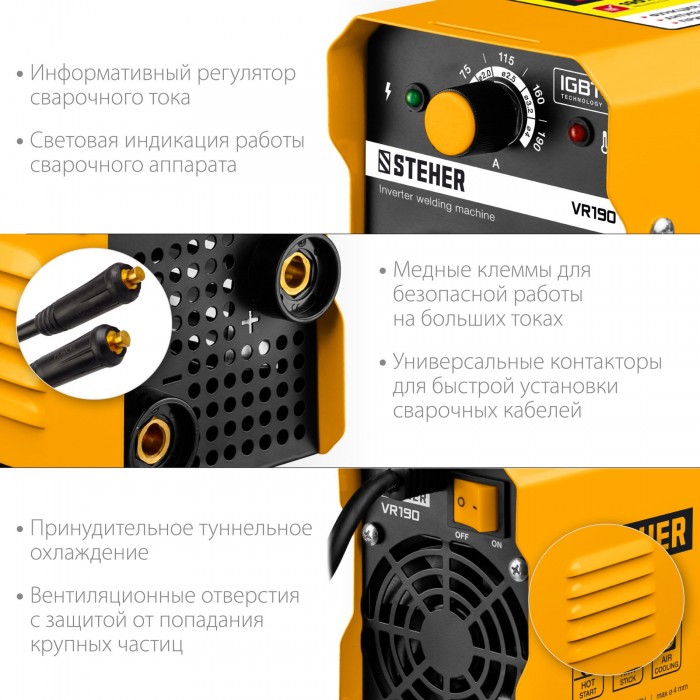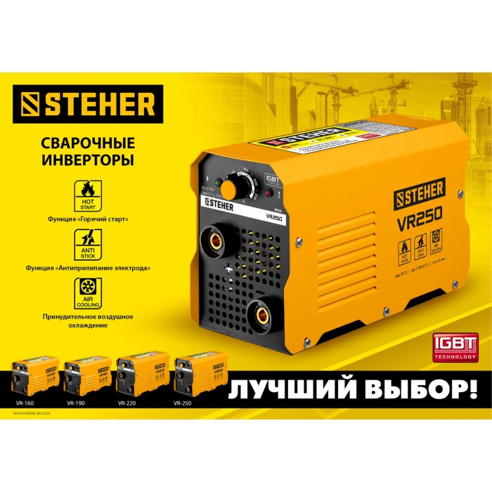 Аппарат сварочный инверторный ММА STEHER 190 А макс. электрод O 4.0 мм VR-190