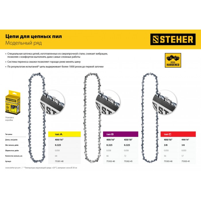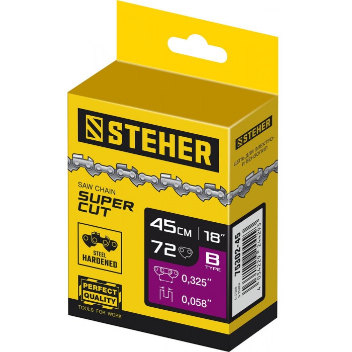 Пильные цепи STEHER изготовлены для использования в самых ответственных работах и в самых трудных условиях. Высокое качество материалов и изготовления гарантирует надежность и отличные характеристики на весь срок службы