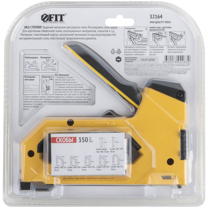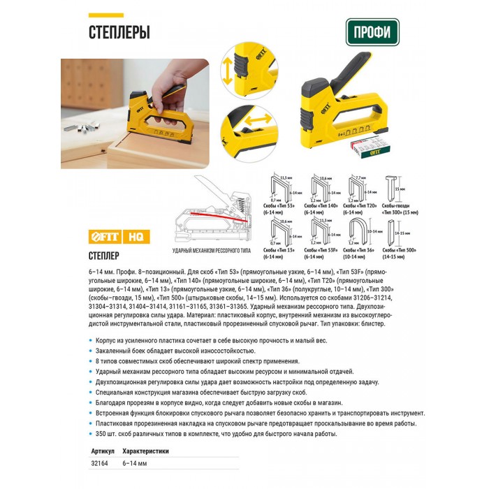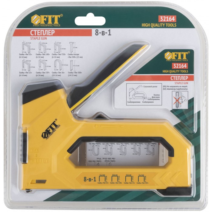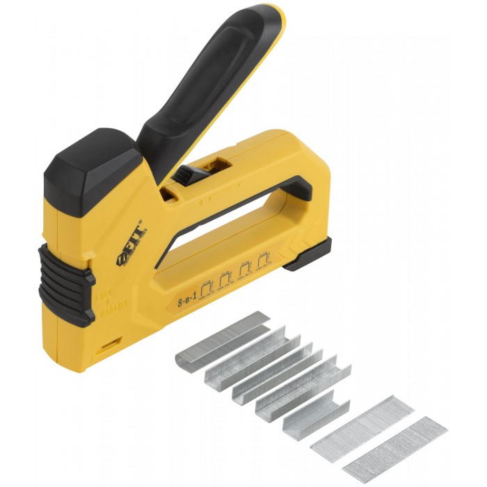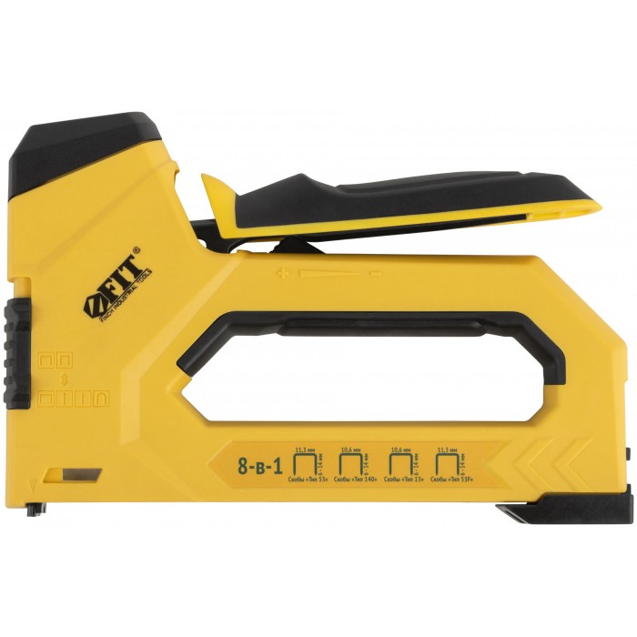 Степлер 8-в-1 для скоб "тип 53","тип 53F", "тип 140", "тип Т20","тип 28", "тип" 36, "тип 300", "тип 500" , 4-14 мм, 2-х позиционная регулировка силы у (32164)