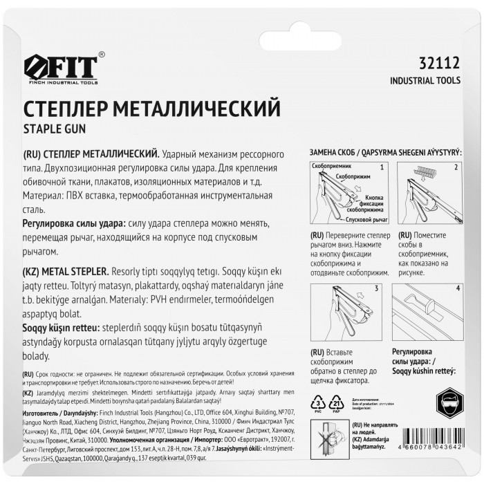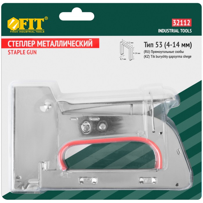 Степлер для узких скоб "тип 53" 4-14 мм, 2 положения силы удара, рессорный механизм, металлический корпус (32112)