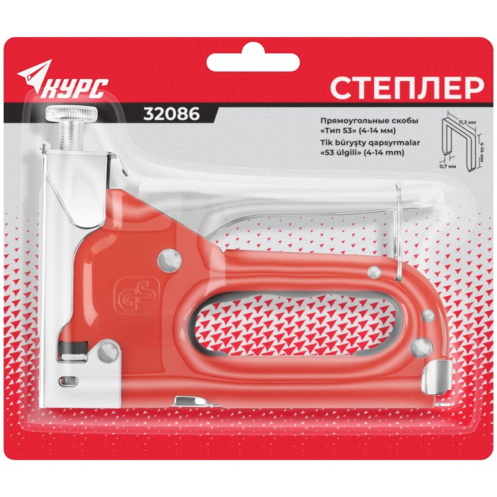 Степлер для узких скоб "тип 53" 4-14 мм, регулировка силы удара, металлический корпус (32086)