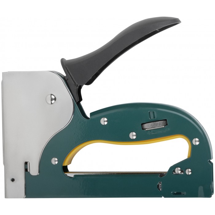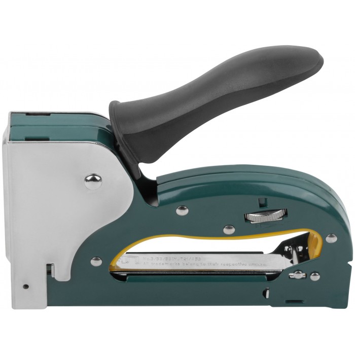 Степлер для узких скоб "тип 53", 4-14 мм, регулировка силы удара, рессорный механизм, металлический корпус (32122)