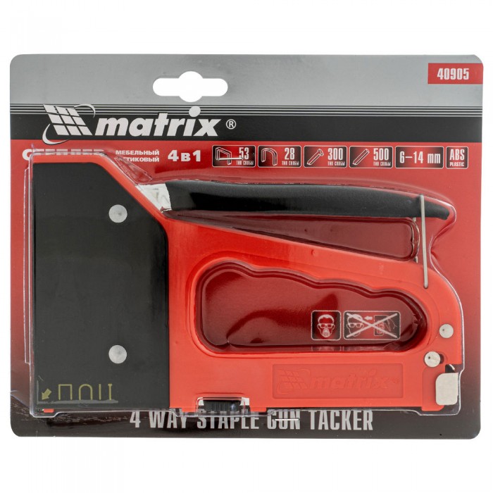 Степлер мебельный 4-функциональный пластиковый, тип скобы: 53, 28, 300, 500, 6-14 мм Matrix (40905)