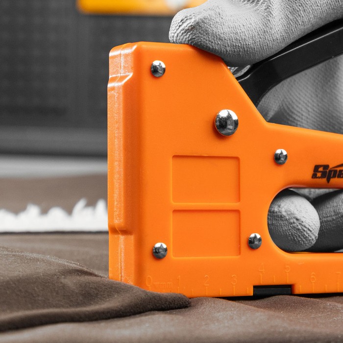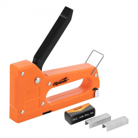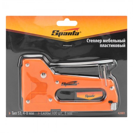 Степлер мебельный пластиковый, со скобами 100 шт, тип скобы 53, 4-8 мм Sparta (42001)