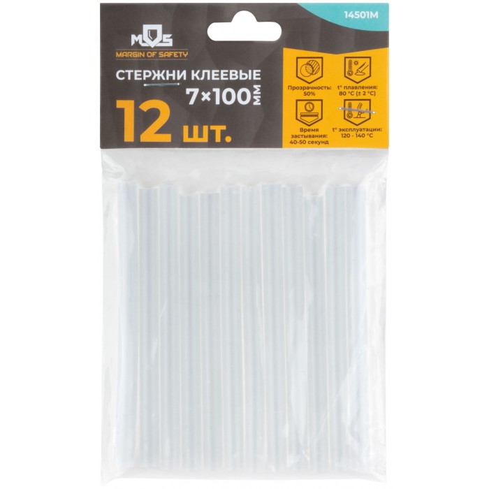 Стержни клеевые 7x100 мм, 12 шт., прозрачность 50% (14501М)