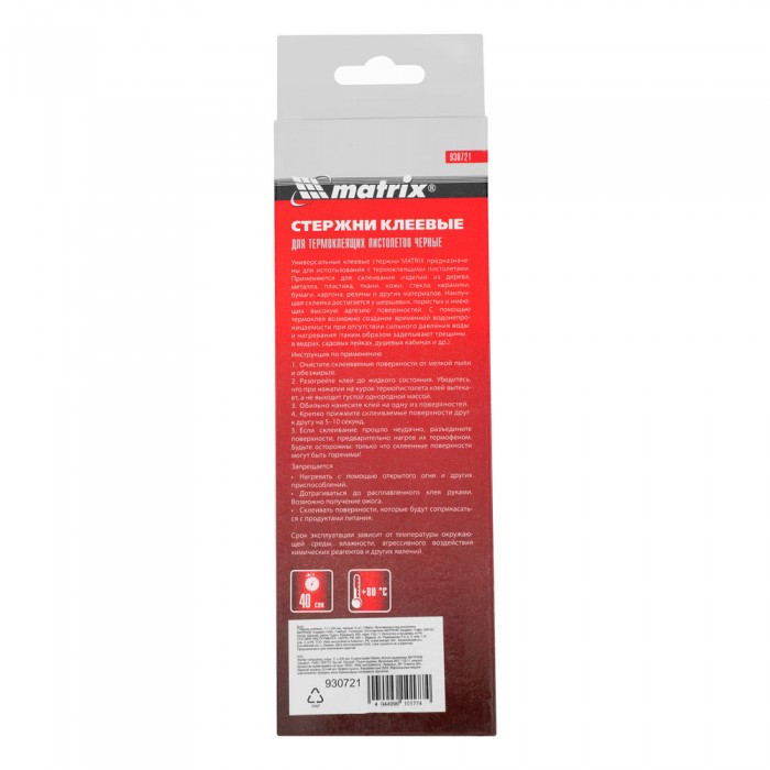 Стержни клеевые, черный, 11 х 200 мм, в упаковке 6 шт Matrix (930721)