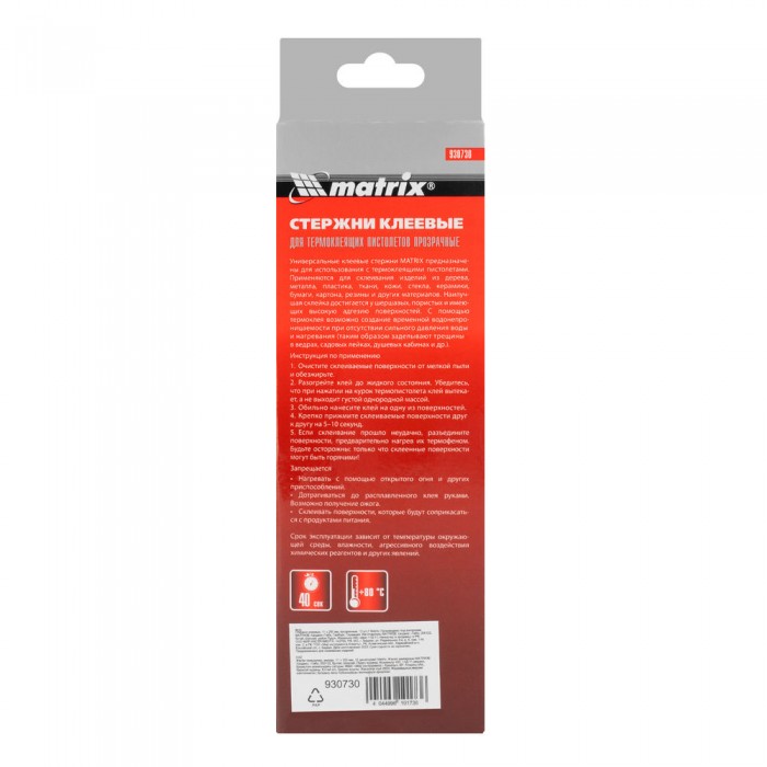 Стержни клеевые, прозрачные, 11 х 200 мм, в упаковке 12 шт Matrix (930730)