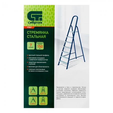 Стремянка, 7 ступеней, стальная, Сибртех (97847)