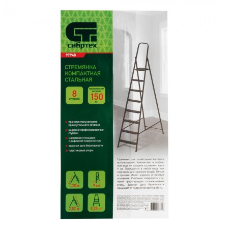 Стремянка 8 ступеней, компактная, стальная Сибртех (97948)