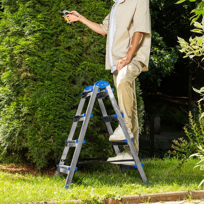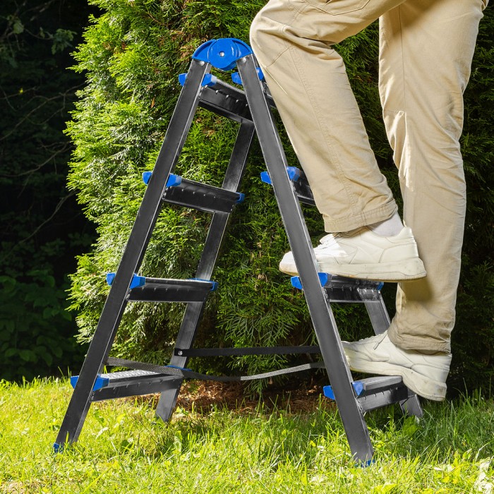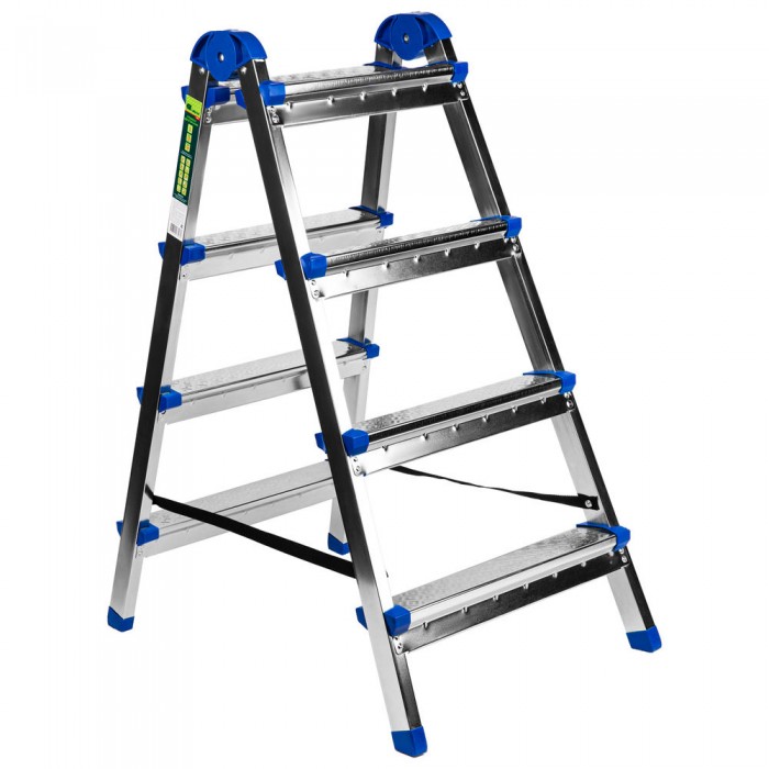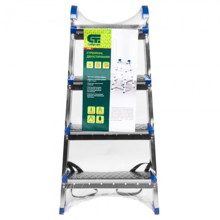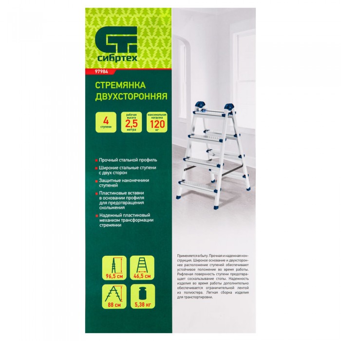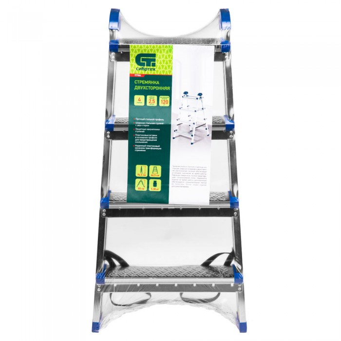 Стремянка двухсторонняя 4 ступени, сталь профиль, стальные ступени, Сибртех (97984)