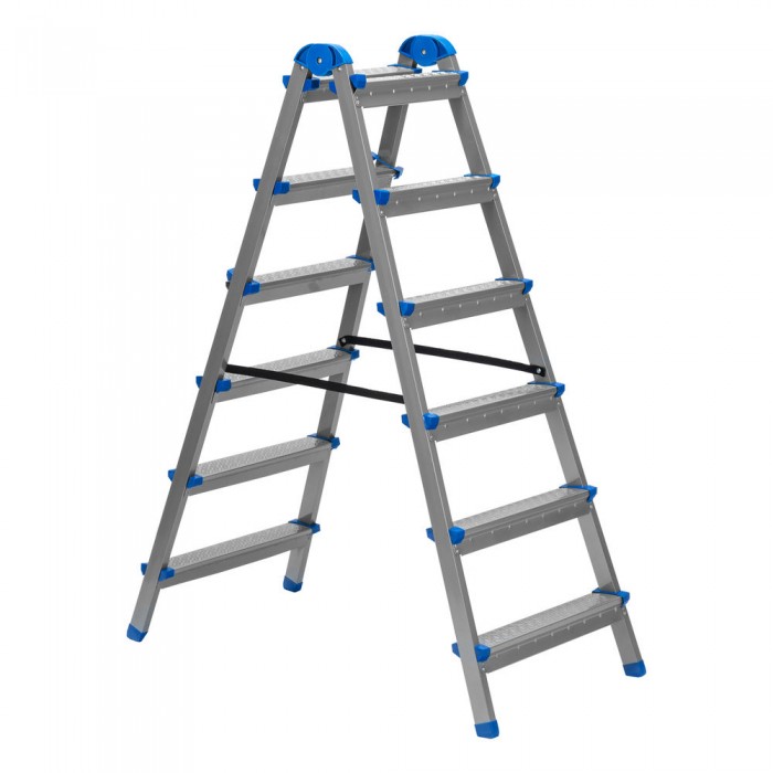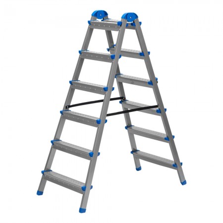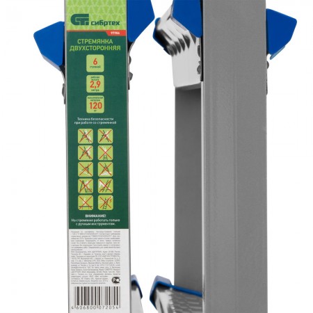 Стремянка двухсторонняя 6 ступеней, сталь профиль, стальные ступени, Сибртех (97986)