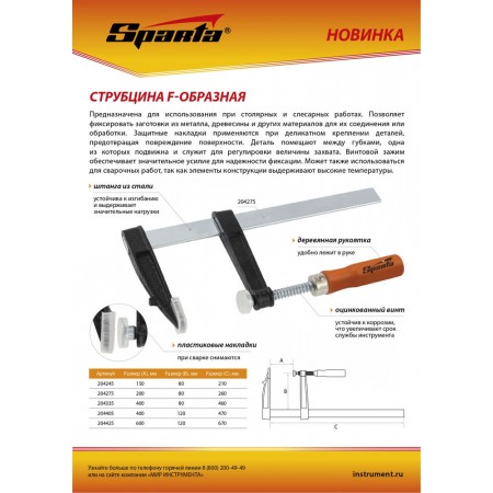 Струбцина F-образная, 600 х 120 х 670 мм Sparta (204425)