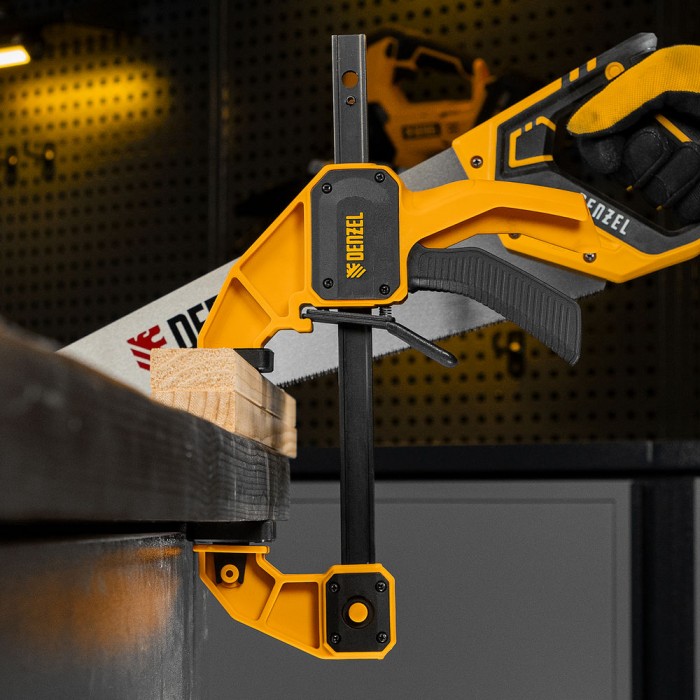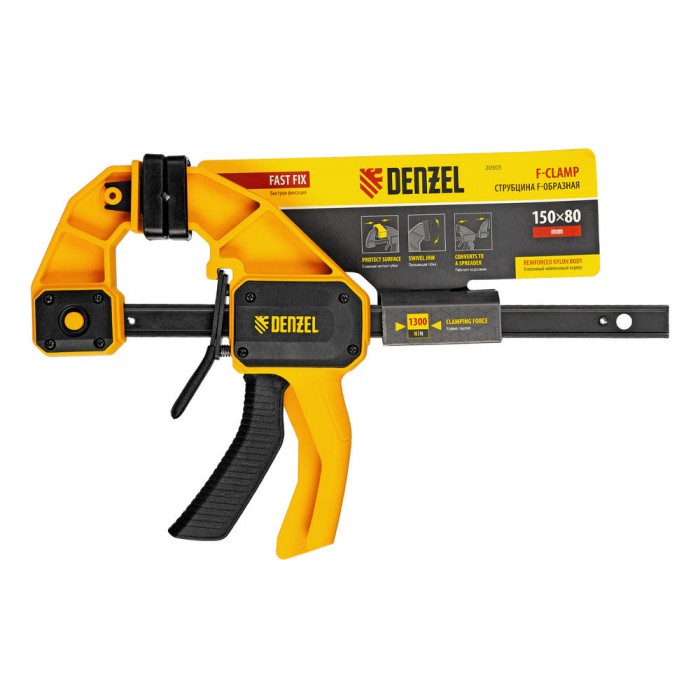 Струбцина F-образная, быстрозажимная, 150 х 80 мм, усиленный нейлоновый корпус Denzel (20505)