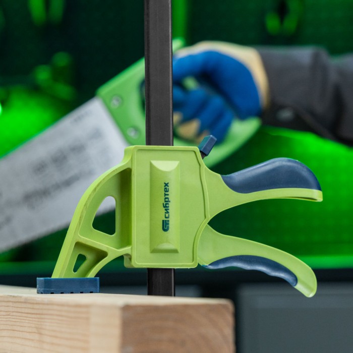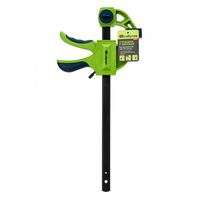 Струбцина F-образная, быстрозажимная, 200 х 70 х 420 мм, пластиковый корпус, фиксатор, двухкомпонентная рукоятка Сибртех (20564)
