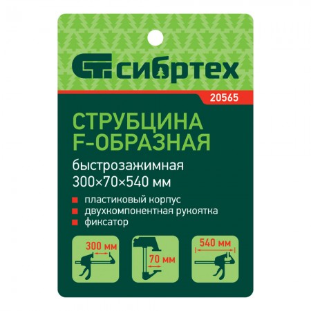Струбцина F-образная, быстрозажимная, 300 х 70 х 540 мм, пластиковый корпус, фиксатор, двухкомпонентная рукоятка Сибртех (20565)