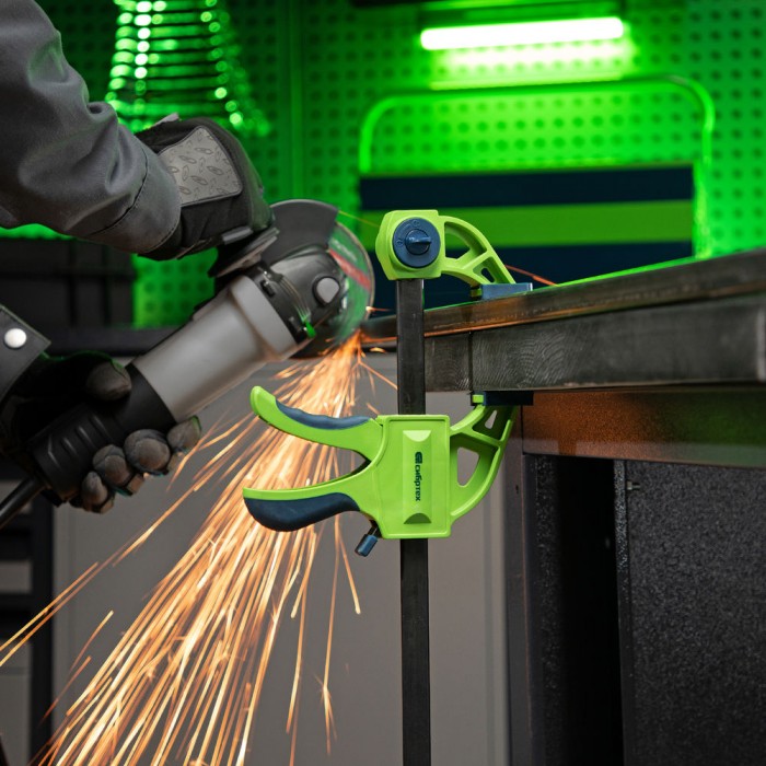Струбцина F-образная, быстрозажимная, 450 х 70 х 660 мм, пластиковый корпус, фиксатор, двухкомпонентная рукоятка Сибртех (20566)