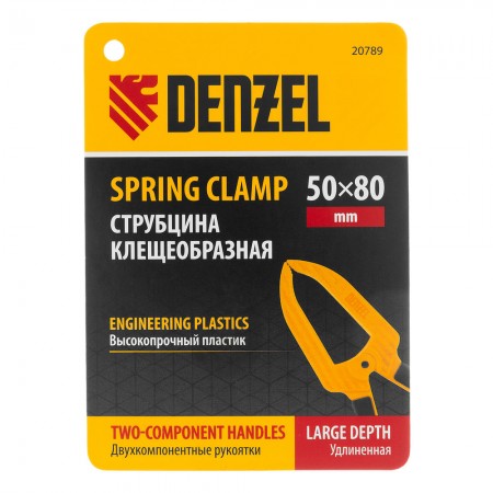 Струбцина клещеобразная, удлиненная 50 х 80 мм двухкомпонентные рукоятки Denzel (20789)