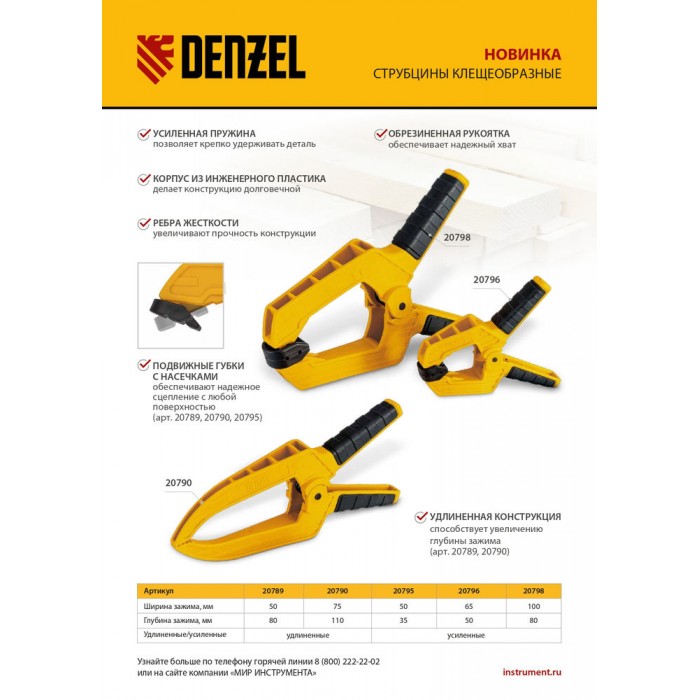 Струбцина клещеобразная, усиленная 50 х 35 мм, двухкомпонентные рукоятки Denzel (20795)