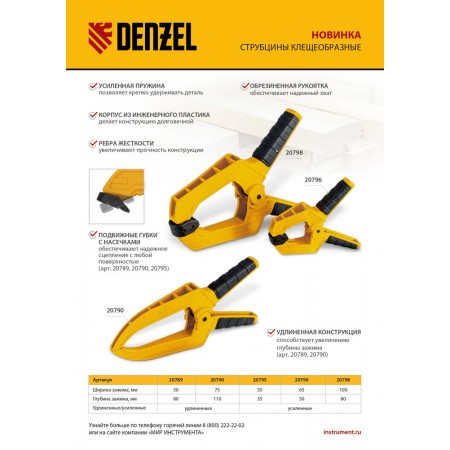 Струбцина клещеобразная, усиленная 65 х 50 мм, двухкомпонентные рукоятки Denzel (20796)