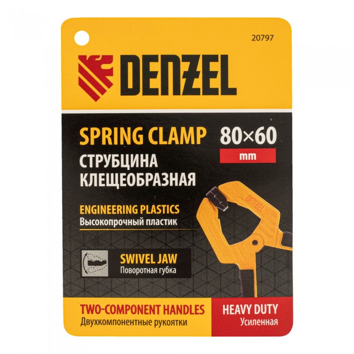Струбцина клещеобразная, усиленная 80 х 60 мм, двухкомпонентные рукоятки Denzel (20797)