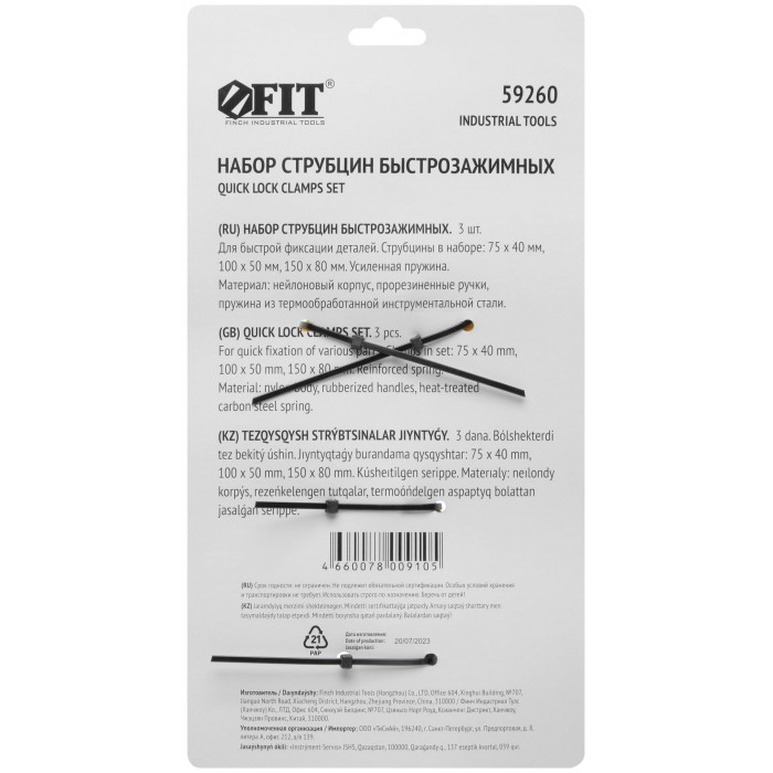 Струбцины нейлоновые быстрозажимные, набор 3 шт. ( 75x40 мм / 100х50 мм / 150x80 мм) (59260)