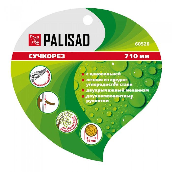 Сучкорез с наковальней, 710 мм, двухрычажный механизм, двухкомпонентные рукоятки, Palisad (60520)