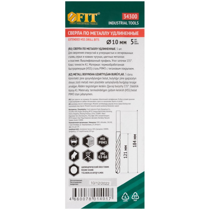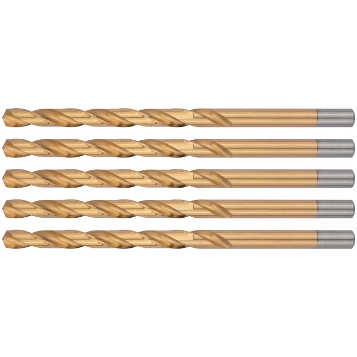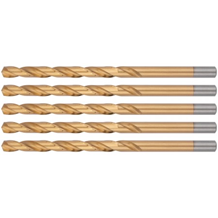Сверла HSS по металлу, удлиненные, титановое покрытие 10,0х184 мм (5 шт.) (34300)
