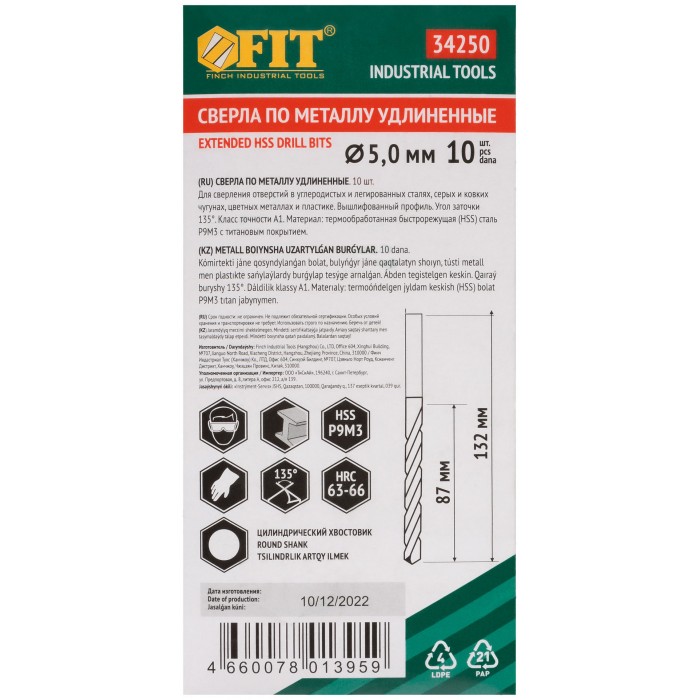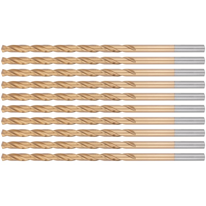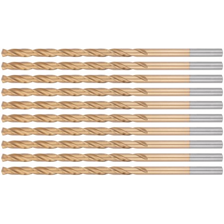 Сверла HSS по металлу, удлиненные, титановое покрытие 5,0х132 мм (10 шт.) (34250)