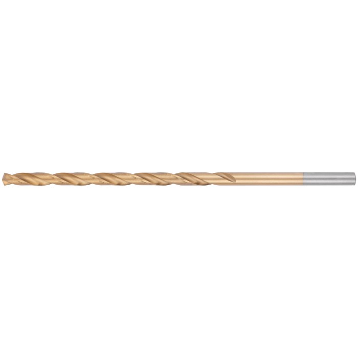 DIN 340, удлиненное. Цилиндрический хвостовик. Вышлифованный профиль. Класс точности А1. УголBзаточки 135 градусов. Материал: быстрорежущая (HSS) сталь Р9М3 c титановым покрытием. Упаковка: картонный конверт.
