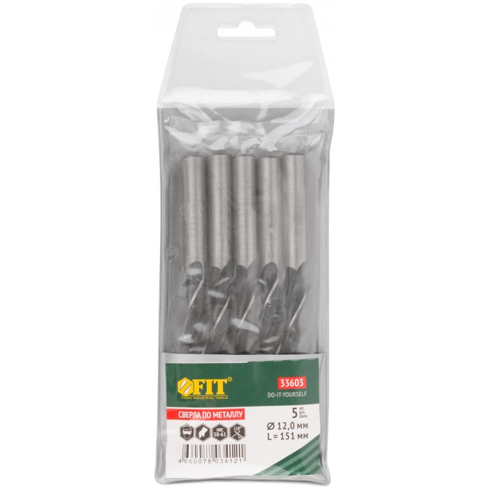 Сверла по металлу HSS черненые 12,0x151 мм (5 шт.) (33603)