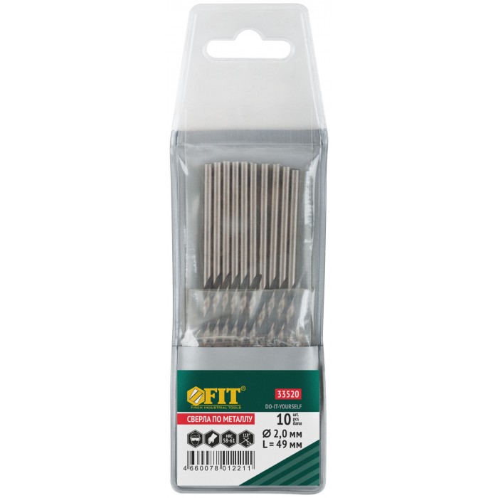 Сверла по металлу HSS черненые 2,0x49 мм (10 шт.) (33520)
