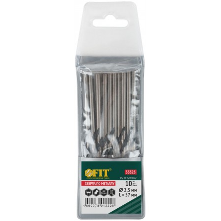 Сверла по металлу HSS черненые 2,5x57 мм (10 шт.) (33525)