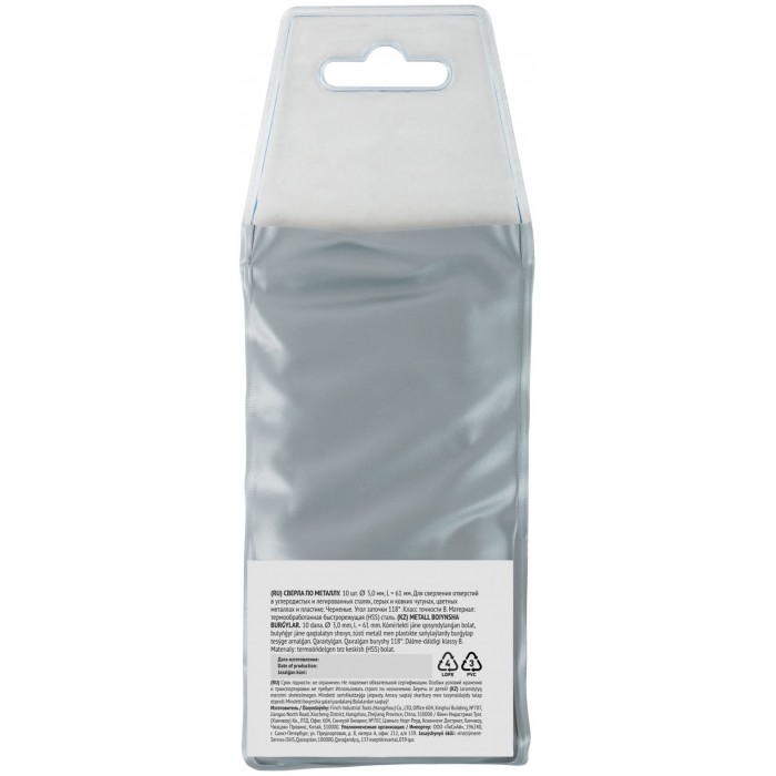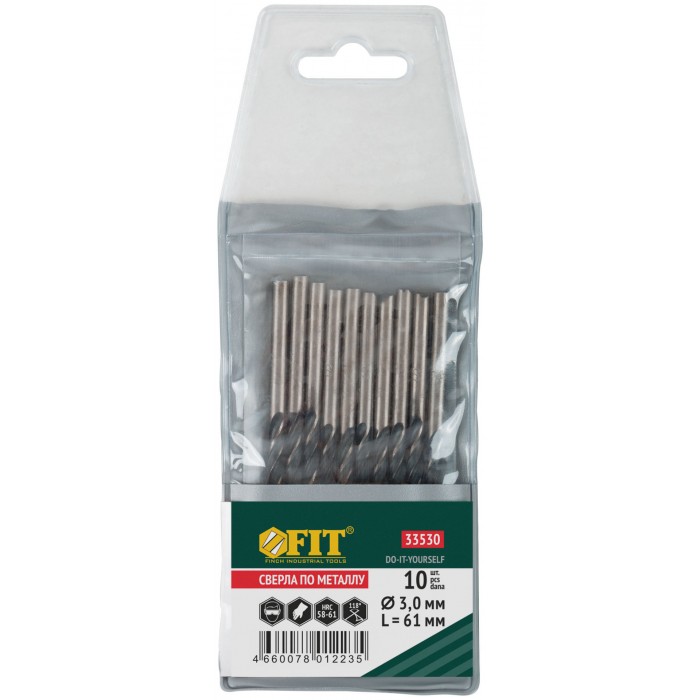 Сверла по металлу HSS черненые 3,0x61 мм (10 шт.) (33530)