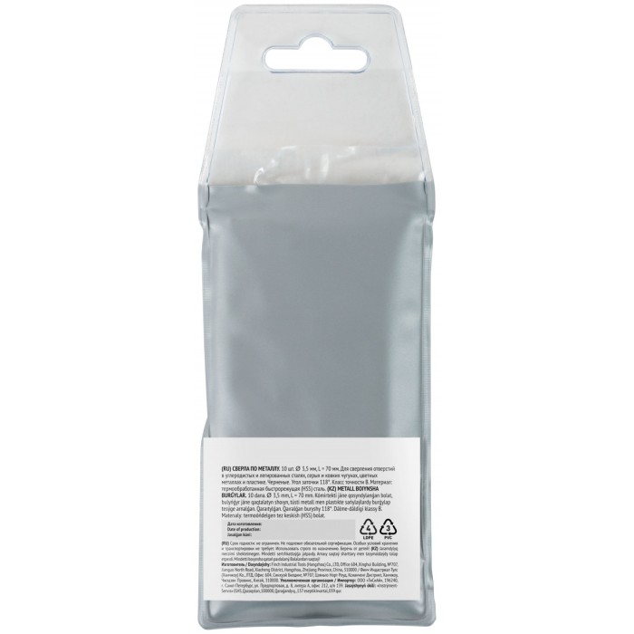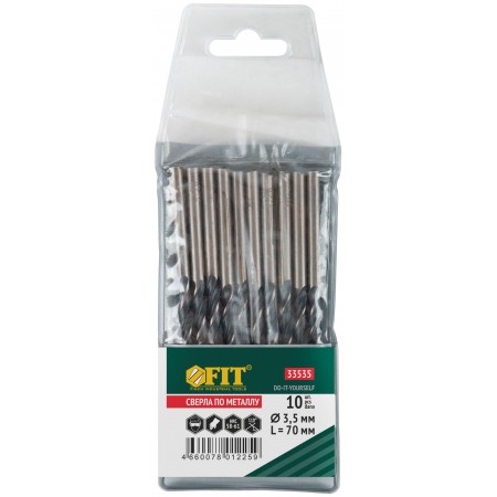 Сверла по металлу HSS черненые 3,5x70 мм (10 шт.) (33535)