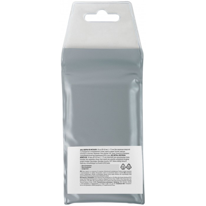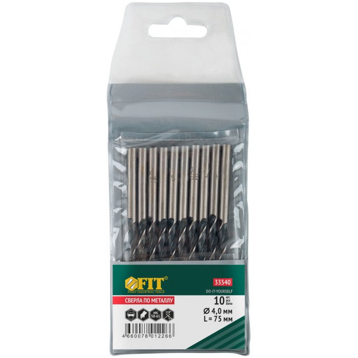 Сверла по металлу HSS черненые 4,0x75 мм (10 шт.) (33540)